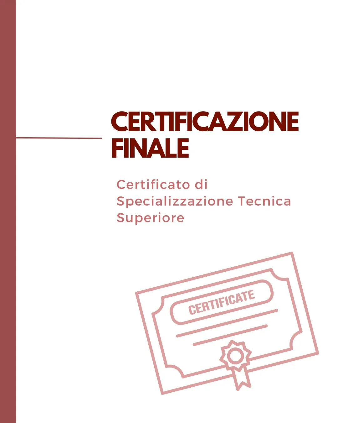 Al termine delle attività formative, gli allievi che hanno frequentato le lezioni almeno il 75% delle ore previste, saranno ammessi alla verifica finale. Agli allievi che supereranno con profitto la verifica sarà rilasciato un "Certificato di Specializzazione Tecnica Superiore" (IV livello EQF).
